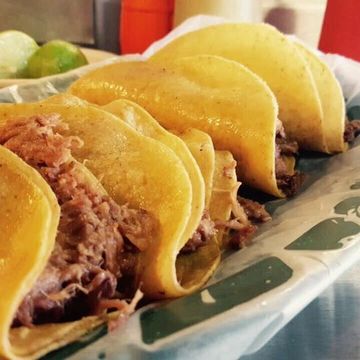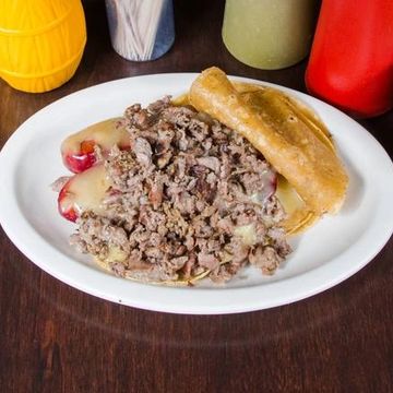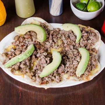 En tortilla de harina o maíz con queso gouda, aguacate y arrachera.